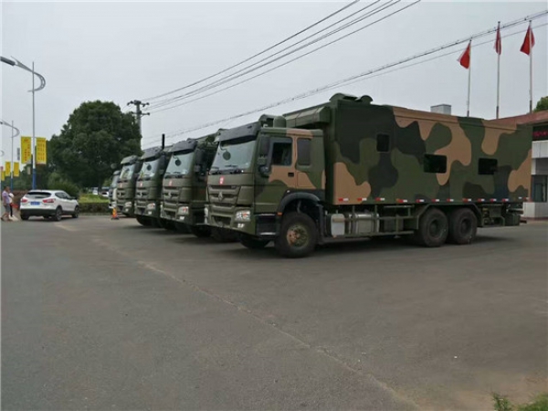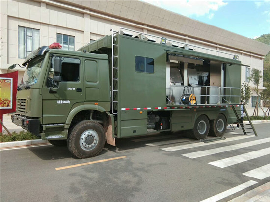 重汽后雙橋炊事車,是一種可快速機動,快速展開的標準化廚房用車。根據(jù)用餐人員的數(shù)量專業(yè)定制大小適量的也用炊事車型。